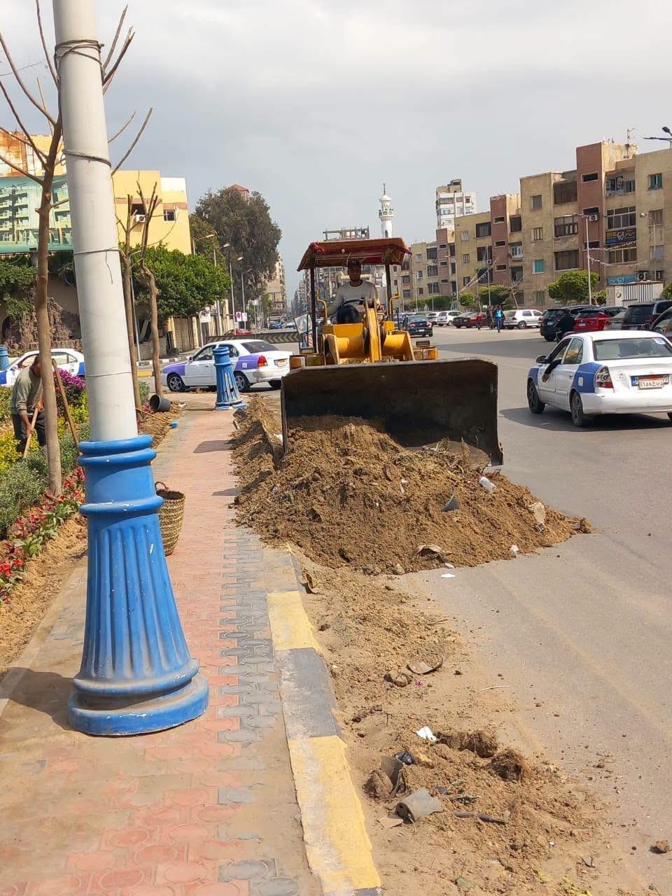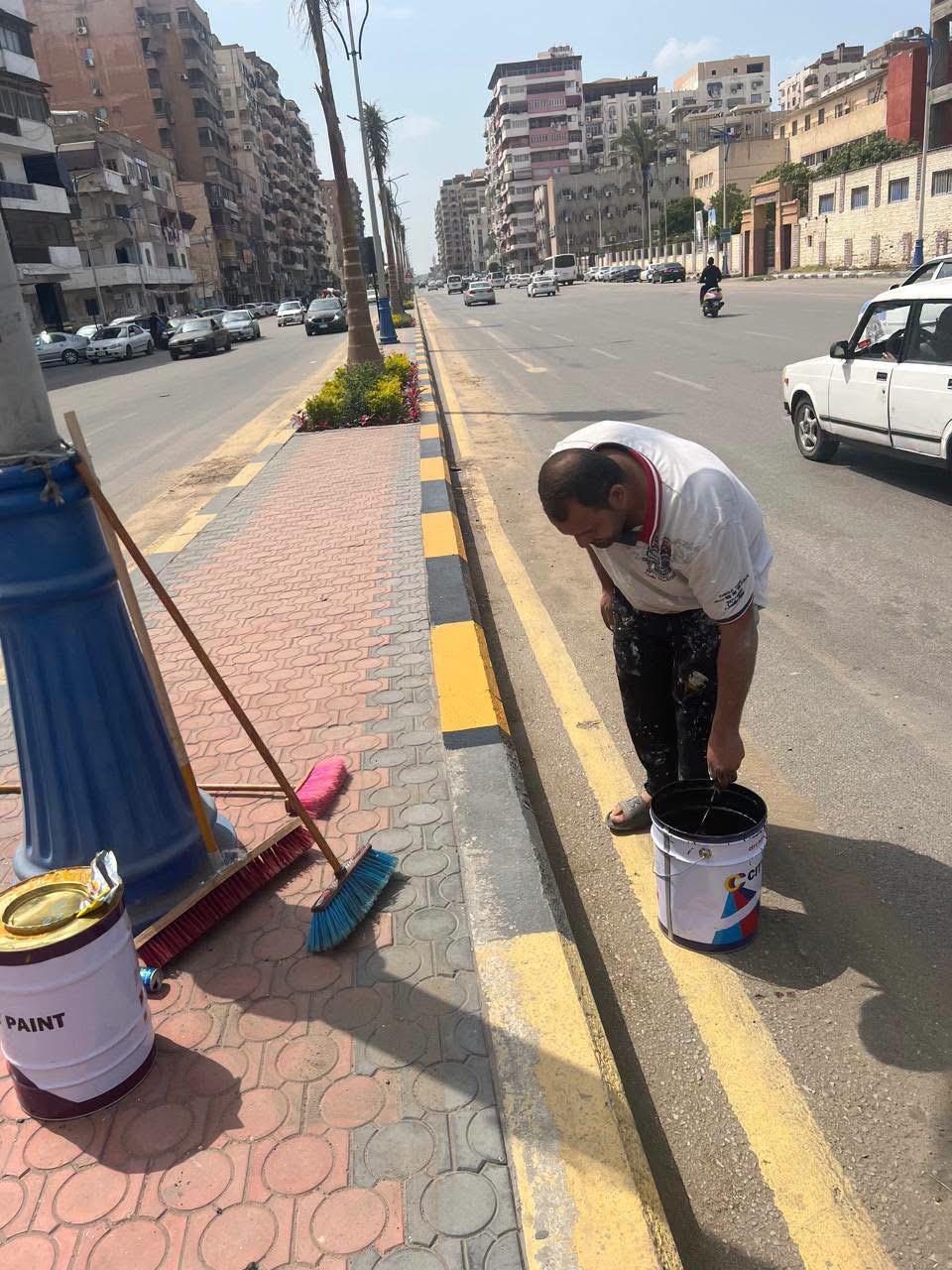 متابعة أعمال النظافة بطريق اللواء أحمد عبد الله وصيانة المسطحات الخضراء