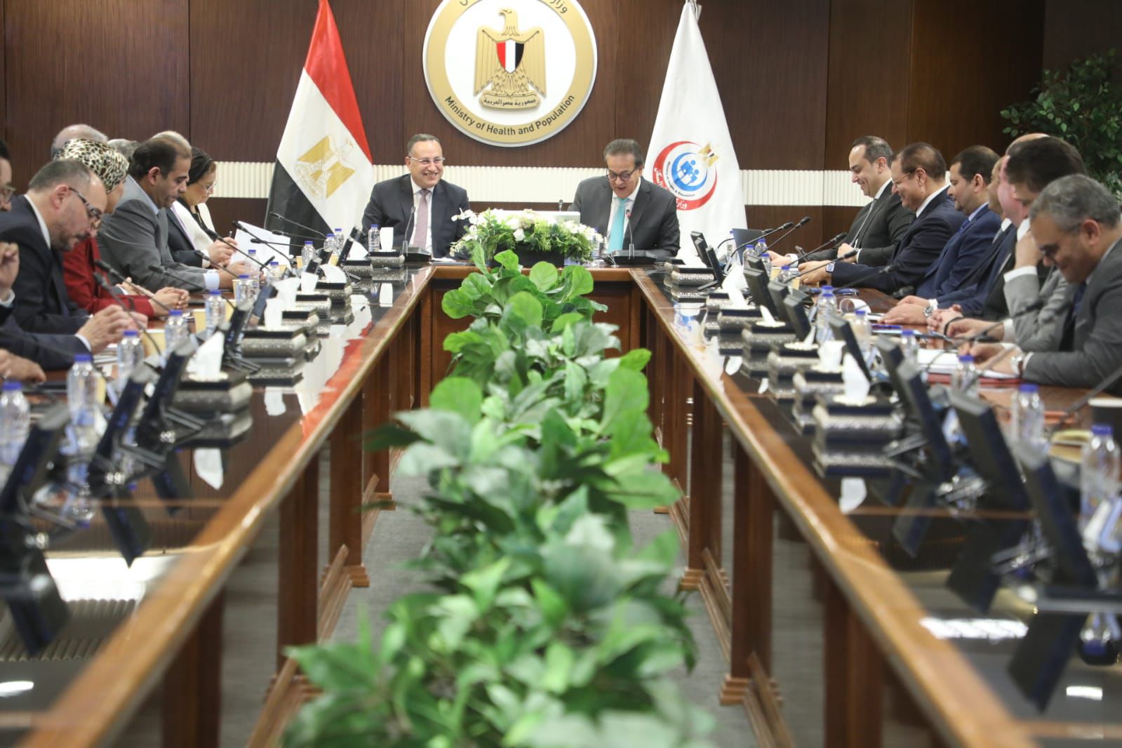 عقد الدكتور خالد عبدالغفار، وزير الصحة والسكان، والدكتور عبدالعزيز قنصوة، وزير التعليم العالي والبحث العلمي، اجتماعاً موسعاً مع رؤساء الجامعات المصرية، لمناقشة سبل تعزيز التعاون وتكامل الجهود في منظومة التأمين الصحي الشامل، وذلك بمقر وزارة الصحة بالعاصمة الإدارية الجديدة.