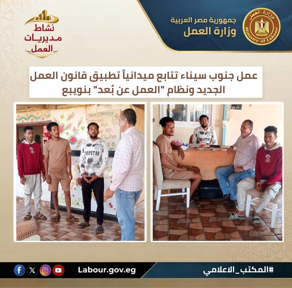 6. متابعة قانون العمل الجديد ونظام "العمل عن بُعد" بمدينة نويبع