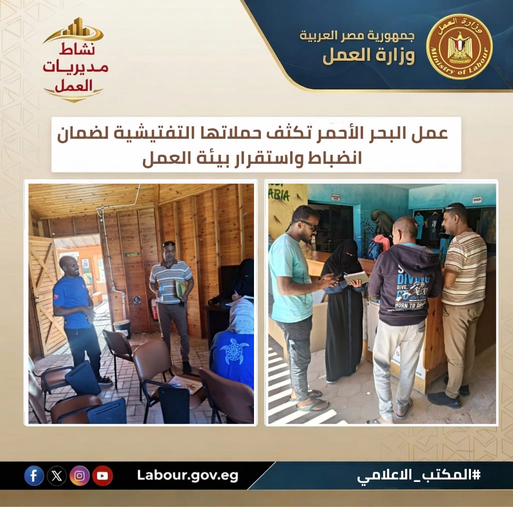 تنفيذًا لتوجيهات وزير العمل حسن رداد، واصلت مديرية عمل البحر الأحمر، بإشراف أحمد جابر، حملاتها الميدانية على منشآت القطاع الخاص. وتستهدف الحملات التأكد من صون حقوق العمال وتقديم التوعية القانونية لأصحاب الأعمال بما يضمن التوازن بين طرفي الإنتاج ودعم التنمية المستدامة بالمحافظة.