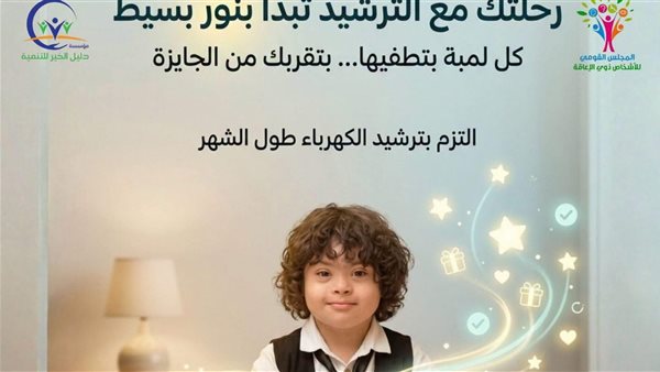 أعلن المجلس القومي للأشخاص ذوي الإعاقة برئاسة الدكتورة إيمان كريم المشرف العام على المجلس، رعايته لمبادرة مبادرة "كن بطل الترشيد" لتوفير الكهرباء، التي أطلقتها مؤسسة دليل الخير للتنمية، التي تعمل على رفع وعي الأطفال والصغار من ذوي الإعاقة بأهمية ترشيد الاستهلاك.