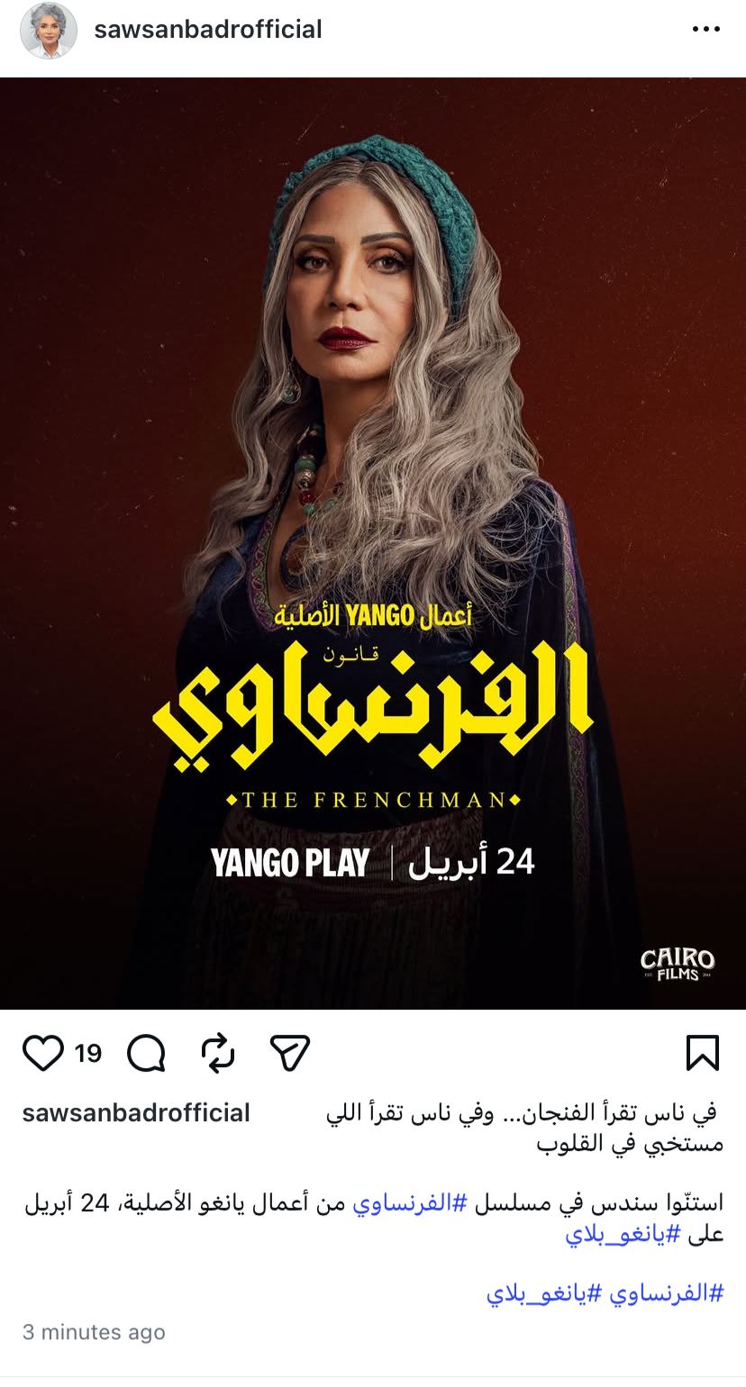 ويُعرض مسلسل “الفرنساوي” عبر منصة يانغو بلاي، ضمن خطة المنصة لتقديم أعمال درامية ضخمة تمزج بين الغموض والتشويق، حيث من المنتظر أن يشكل العمل إضافة قوية لموسم العرض، مع دور محوري تقدمه سوسن بدر داخل الأحداث.
