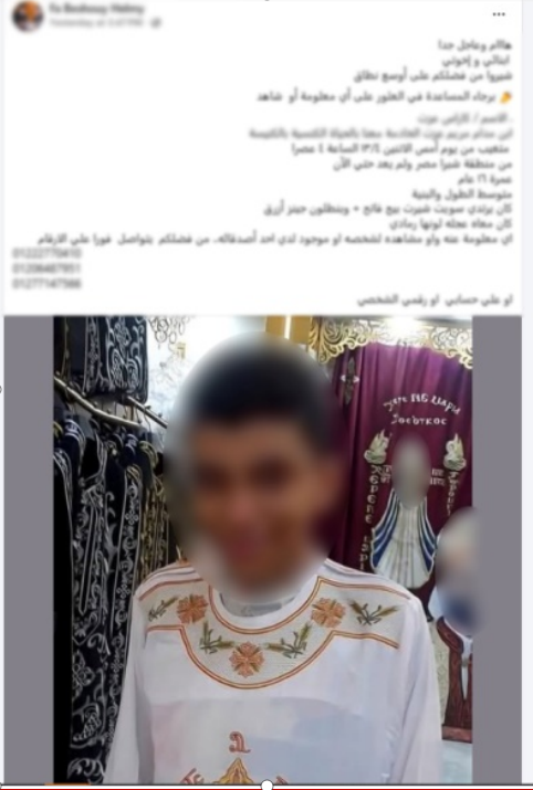 تمكنت الاجهزة الامنية بوزارة الداخلية ، من كشف ملابسات منشور مدعوم بصورة تم تداوله بأحد الحسابات الشخصية بمواقع التواصل الإجتماعى تضمن إستغاثة صاحب الحساب بشأن تغيب أحد الأشخاص بالقاهرة