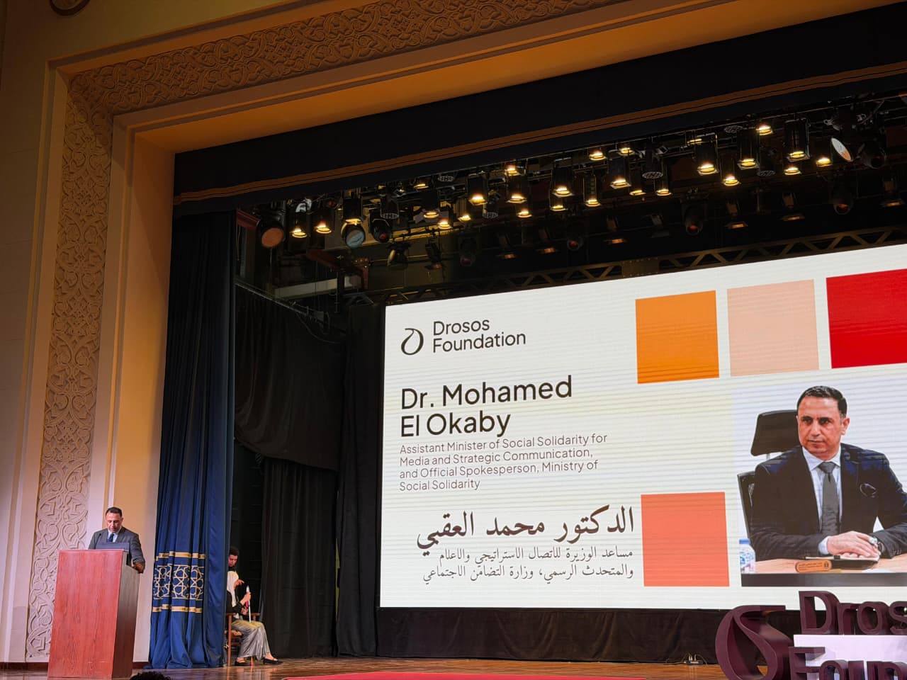 وألقي الدكتور محمد العقبي كلمة نيابة عن الدكتورة مايا مرسي نقل فيها تحيات وزيرة التضامن الاجتماعي، وتقديرها العميق لمؤسسة دروسوس وشركاء المجتمع المدني الذين آمنوا بأن الاستثمار في الشباب هو الاستثمار الأضمن لمستقبل مصر.