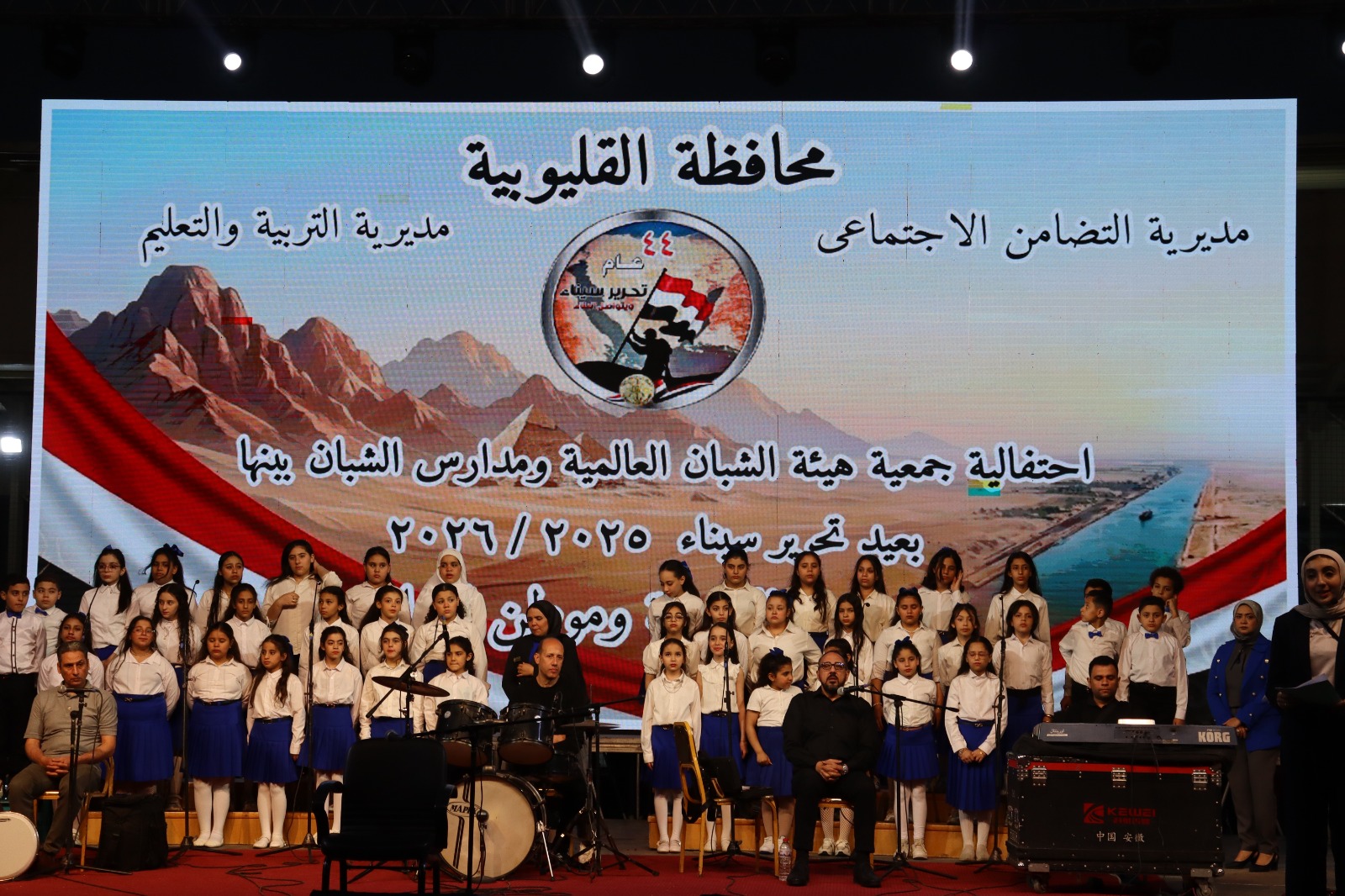 شهد الدكتور المهندس حسام عبد الفتاح، محافظ القليوبية، يرافقه الدكتور ناصر الجيزاوي، رئيس جامعة بنها، الاحتفالية الكبرى التي نظمتها جمعية الشبان العالمية بمناسبة الذكرى الـ 44 لتحرير سيناء الغالية.