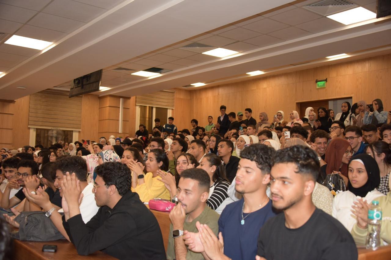 وفي نهاية الندوة، تم بإدارة، وتعقيب من د.محمد رفعت نائب رئيس الجامعة لشئون خدمة المجتمع وتنمية البيئة فتح باب المناقشة والحوار مع الطلاب والرد على تساؤلاتهم المختلفة بهدف إثراء أفكارهم حول فعاليات المحاضرة، بهدف تكوين جيل واعٍ بتحديات العصر، وأشار إلى رمزية المكان ودلالته، وكيف كانت منصة قاعة الاحتفالات الكبري بالجامعة ومقاعدها تحمل بصمة رموز فنية رفيعة كأم كلثوم والموسيقار محمد عبد الوهاب، مطالبا الشباب بأن يحلموا ويسعون بكل السبل لتحقيق أحلامهم.
