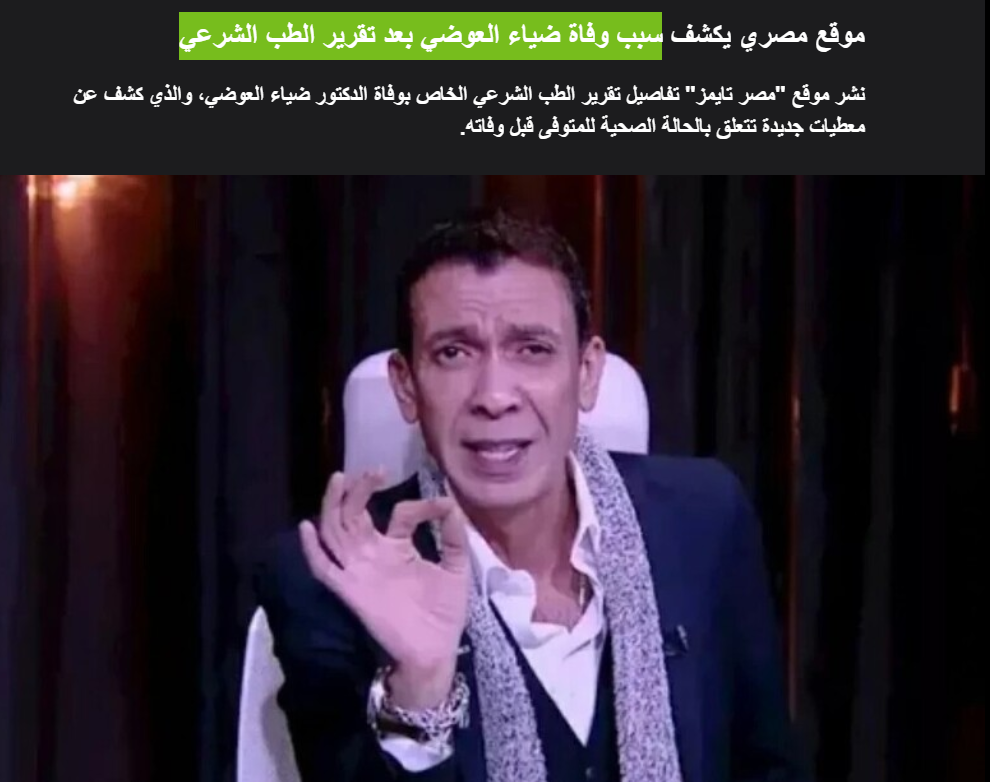 روسيا اليوم تبرز انفراد «مصر تايمز»: سبب وفاة ضياء العوضي