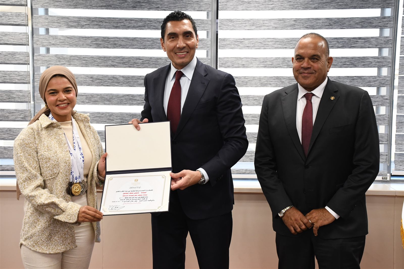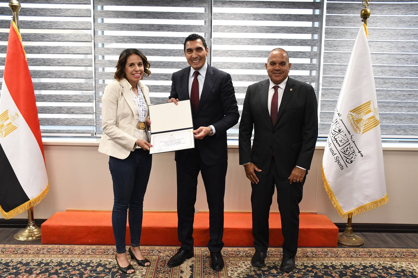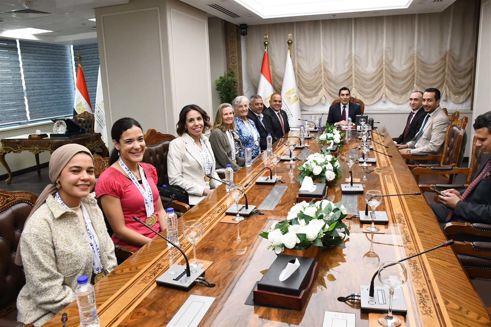 وكرم الوزير اللاعبات " رفيف هشام ، كاثرين ماري حنفي ، ياسمين مسعد ، هبة الله يحي ، مني كامل يوسف " الحاصلين علي العديد من الميداليات الذهبية والمتنوعة ، في بطولة العالم للماسترز للسباحة بالزعانف.
