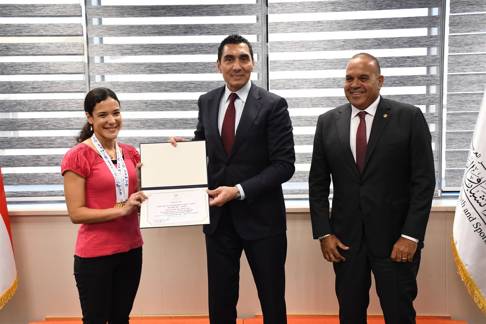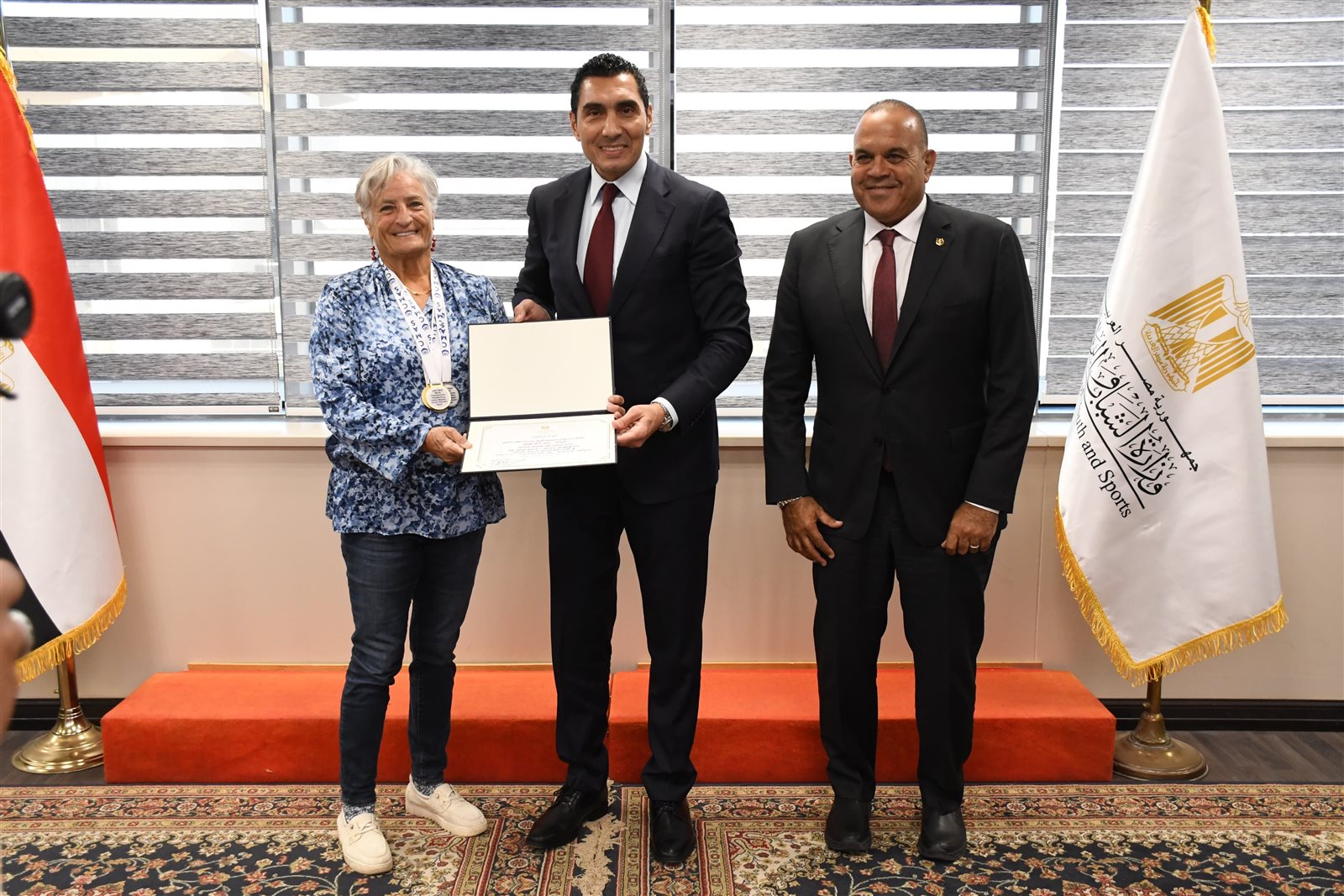 حرص جوهر نبيل ، وزير الشباب والرياضة علي تكريم بطلات مصر والعالم في بطولة العالم للأساتذة لسباحة الزعانف وذلك بعد حصولهم علي العديد من الميداليات الذهبية والمتنوعة وتصدرهم للبطولة بفارق كبير عن اقرب المنافسين ، والتي أقيمت بشرم الشيخ وبحضور سامح الشاذلي، رئيس الاتحادين المصري والإفريقي للسباحة بالزعانف والعميد هيثم جعفر عضو مجلس ادارة الاتحاد المصري للسباحة بالزعانف.