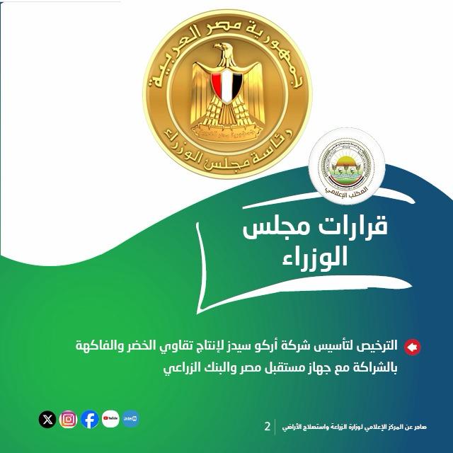 شهدت وزارة الزراعة واستصلاح الأراضي نشاطا واسعا خلال الأسبوع الماضي تنوع بين قرارات استراتيجية لتعزيز الإنتاج الزراعي وتحركات ميدانية لدعم المزارعين ومواجهة التحديات، في مقدمة القرارات وافق مجلس الوزراء على ترخيص لمركز البحوث الزراعية بتأسيس شركة أركو سيدز لإنتاج تقاوي الخضر والفاكهة بالشراكة مع جهاز مستقبل مصر والبنك الزراعي المصري والشركة الوطنية للصناعات المحمية وعدد من شركات القطاع الخاص في خطوة تستهدف توطين صناعة التقاوي وتحسين جودة الإنتاج.