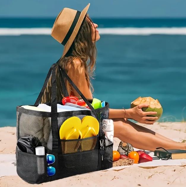 يفضل اختيار حقيبة شاطئ متعددة الجيوب، مما يساعدك على ترتيب محتوياتها بطريقة منظمة وسهلة.