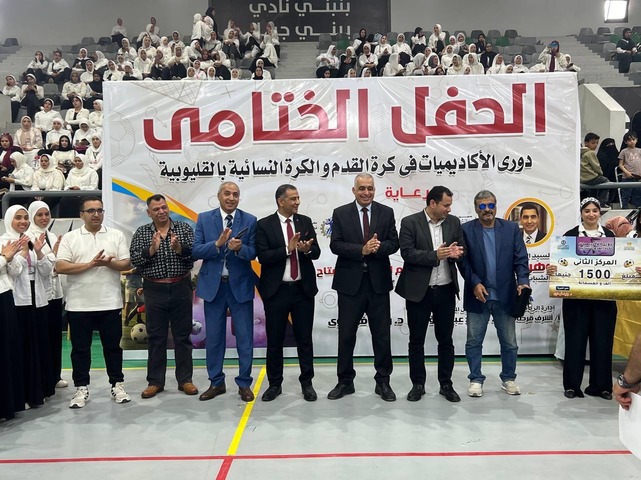 شهد اللواء دكتور محمد عقل السكرتير العام المساعد نائباً عن محافظ القليوبية، حفل ختام النسخة السادسة من دوري أكاديميات كرة القدم للأندية الرياضية ومراكز الشباب بالقليوبية، والنسخة الثانية من دوري الكرة النسائية، والذي أُقيم اليوم الإثنين 27 أبريل الجاري، وسط حضور رسمي وجماهيري مميز.