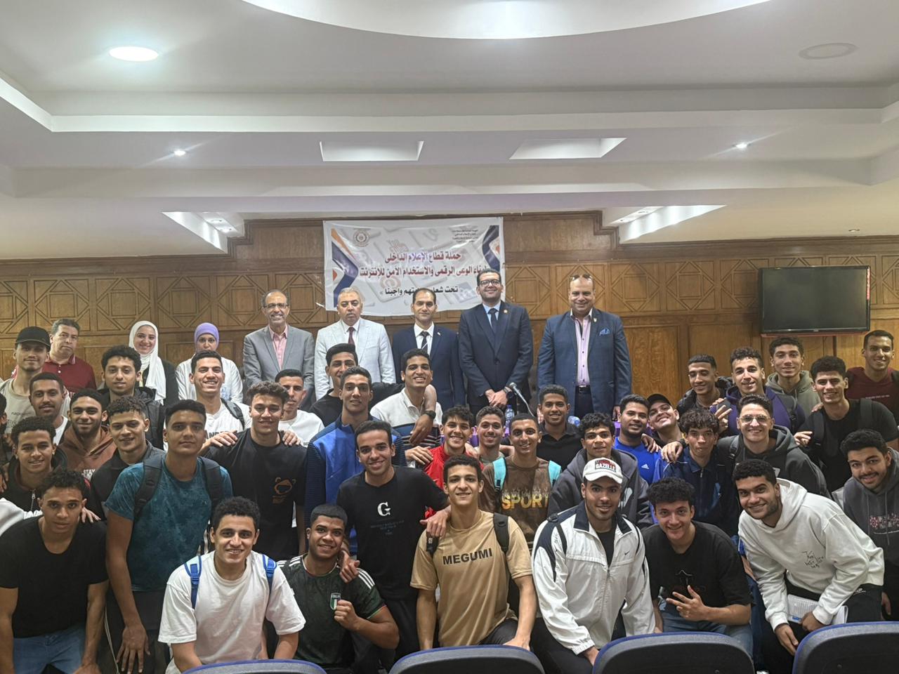 وهدفت الندوة إلى تعزيز الوعي الرقمي لدى الشباب، ونشر ثقافة الاستخدام الآمن للإنترنت، خاصة في ظل التحديات المتزايدة المرتبطة بعصر الذكاء الاصطناعي والمراهنات الإلكترونية، إلى جانب التصدي للشائعات باعتبارها أحد أخطر التهديدات للأمن القومي.