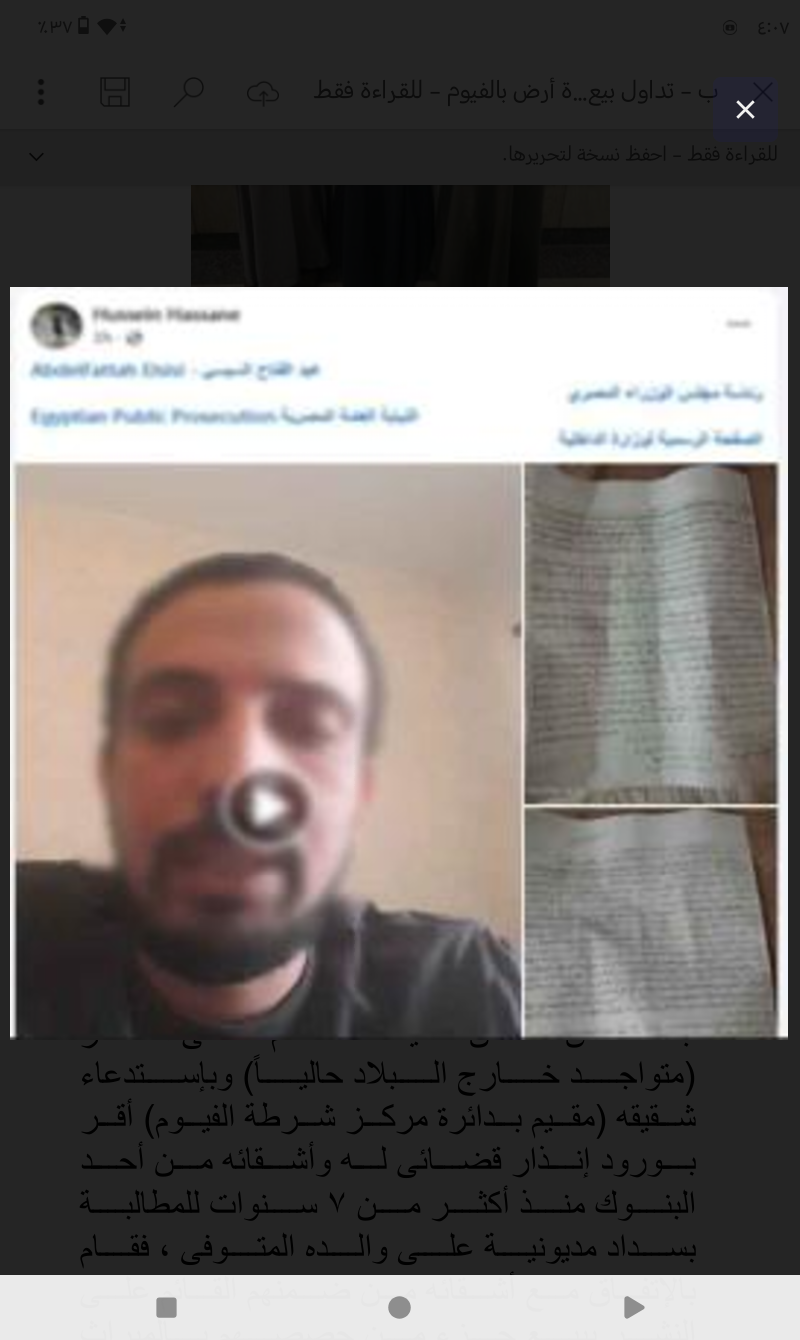 نجحت الأجهزة الأمنية بوزارة الداخلية في كشف ملابسات منشور مدعوم بصور ومقطع فيديو تم تداوله على مواقع التواصل الاجتماعي يتضمن استغاثة أحد الأشخاص من أشقائه لقيامهم باستغلال تواجده خارج البلاد ومحاولة بيع قطعة أرض ملكه آلت إليه بالميراث بمحافظة الفيوم.