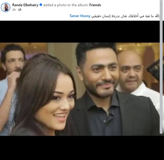 وكتبت راند البحيري من خلال حسابها الرسمي عبر موقع التواصل الاجتماعي فيسبوك، قالت: والله ما فيه في أخلاقك، فنان بدرجة إنسان حقيقي.