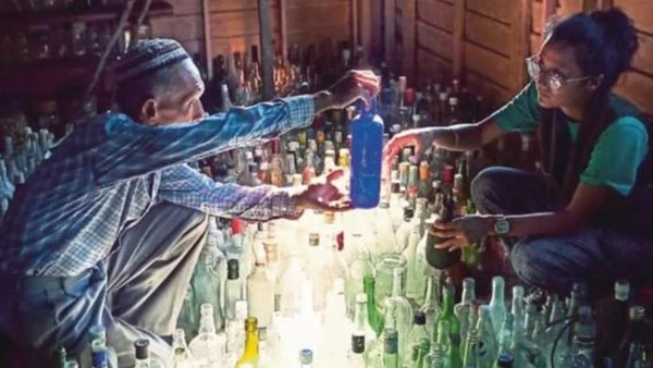 قام رجل ماليزي في الرابعة والسبعين من العمر، بجمع الزجاجات من جميع شواطئ البحر، منذ نحو 15 عام، وعرضها بالآلاف في متحف ملون من صنعة.