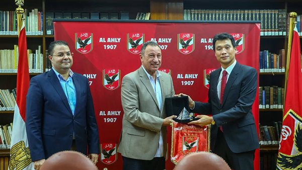 استقبل الكابتن محمود الخطيب، رئيس النادي الأهلي، عصر اليوم بمقر الأهلي بالجزيرة، السيد هونج جين ووك، سفير كوريا الجنوبية في القاهرة.