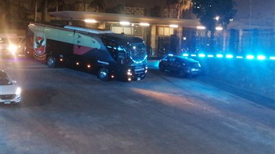 وصلت حافلة النادي الأهلي إلى استاد القاهرة استعداداً لمواجهة بيراميدز في نهائي كأس مصر في التاسعة والربع من مساء اليوم الإثنين، من أجل تحديد