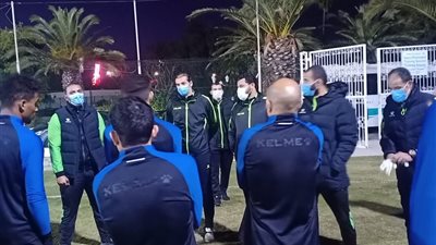 نظم لاعبو الفريق الأول لكرة القدم بنادى المقاولون العرب ممراً شرفياً على ملعب الفريق بالجبل الأخضر لاستقبال الجهاز الفنى بقيادة عماد النحاس.