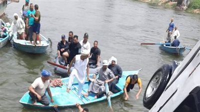 أنتقل فريق من النيابة العامة إلى موقع حادث غرق ميكروباص معدية أبو غالب بمركز شرطة منشأة القناطر بالجيزة لأجراء معاينة تصويرية