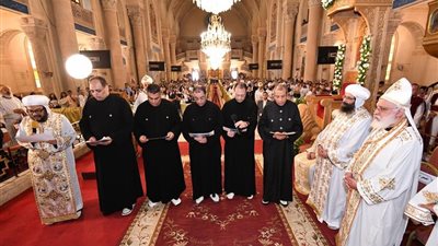 صلي قداسة البابا تواضروس الثاني صباح اليوم القداس الالهي بالكاتدرائية المرقسية بالإسكندرية بمشاركة الآ