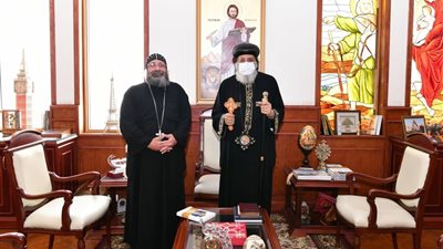 استقبل البابا تواضروس الثاني بالمقر البابوي بالقاهرة، اليوم، الراهب القمص رويس الأنبا بولا كاهن الكنيسة القبطية الأرثوذكسية