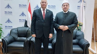 استقبل الدكتور جمال سوسه رئيس جامعة بنها، الشيخ صفوت أبو السعود وكيل وزارة الأوقاف بالقليوبية الذي قام بإهداء