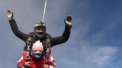 احتفلت جدة مغامرة بعيد ميلادها الـ90 من خلال قفزة بالمظلات بطول 15000 قدم لجمع الأموال للأعمال الخيرية