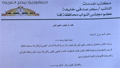 شهدت محافظة قنا حالة من الجدل بعد تداول مستند على موقع التواصل الاجتماعي فيسبوك، يظهر تقدم النائبة سحر صدقي، عضو مجلس النواب عن المحافظة، بطلب رسمي لترخيص ملهى ليلي.