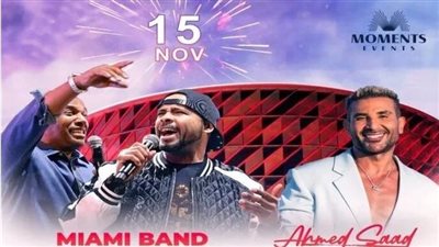 يستعد النجم أحمد سعد، لإحياء حفل غنائي مع فرقة ميامي الغنائية في مدينة دبي الإماراتية، يوم 15 نوفمبر المقبل، ضمن جولته الغنائية يُتوقع أن يكون هذا الحفل واحدًا من أكبر وأهم الفعاليات الموسيقية في دبي