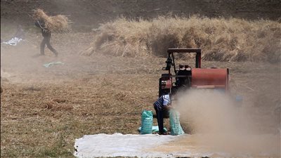 قام جهاز تحسين الاراضي بوزارة الزراعة بتنظيم يوم حصاد موسع لمحصول القمح وأحد الحقول الارشادية لمشروع