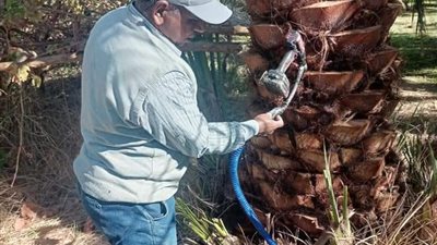 أعلنت مديرية الزراعة بمحافظة الوادي الجديد، فحص النخيل بمنطقة بئر 1 القصر بمركز الداخلة، وعلاج ثلاث نخلات ورش وقائي النخيل