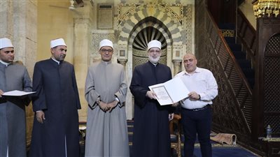 كرّم الدكتور محمد الضويني، وكيل الأزهر، اليوم الأثنين، وفي الليلة الأخيرة من ليالي شهر رمضان المبارك، أئمة القبلة بالجامع الأزهر،