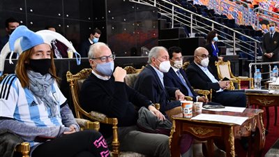 شهد الدكتور أشرف صبحي وزير الشباب والرياضة، مساء اليوم، مباراة منتخبي الارجنتين وقطر في ختام مباريات الدور ال