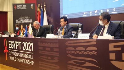 عقد الدكتور اشرف صبحي وزير الشباب والرياضة والدكتور حسن مصطفي رئيس الاتحاد الدولي لكرة اليد مؤتمرا صحفيا
