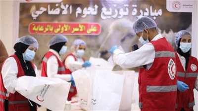 يقوم الهلال الأحمر المصري بتوزيع لحوم الأضاحي، طوال أيام العيد، على الأسر المصرية والفلسطينية الأكثر احتياجًا،