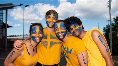 احتشدت الجماهير السويدية خارج ملعب "هامبدن بارك" بمدينة جلاسكو الاسكتلندية، من أحل مساندة ودعم منتخب.