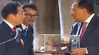 أهدي الدكتور مصطفى مدبولي ، رئيس الوزراء ، نظيره الياباني ، فوميو كيشيدا هدية تذكارية وهي نموذج لمركب