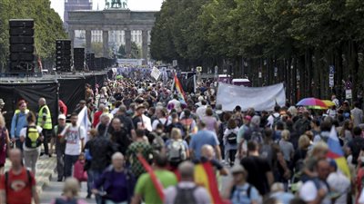 نظم نحو مئتي متظاهر مسيرة صامتة في برلين، اليوم الأحد احتجاجا على ما اعتبروه انتهاكات للحريات، في إشارة إلى الإرشادات الصحية