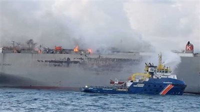 اندلع حريق فجر اليوم الأربعاء 26 يوليو 2023، على متن سفينة لشحن السيارات، قبالة السواحل الهولندية كانت