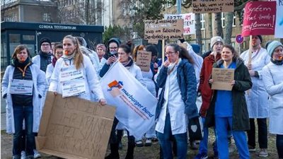 أضرب آلاف الأطباء بالمستشفيات الجامعية في ألمانيا عن العمل، ونظموا مسيرات للمطالبة بزيادة الأجور وتحسين
