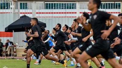 خاص لاعبو الفريق الأول لكرة القدم بنادي الزمالك مجموعة من التدريبات التأهيلية والإطالات قبل انطلاق المران المسائي