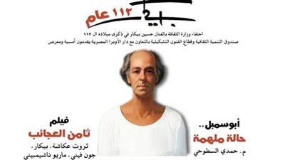 تحتفي وزارة الثقافة المصرية بذكرى ميلاد الفنان التشكيلي الكبير حسين بيكار الـ 112 من خلال احتفالية خاصة، تُقام يوم 21