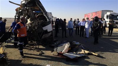 شهد الطريق الصحراوي الشرقي حادث تصادم أتوبيس نقل عام بسيارة نقل ثقيل بمقطورة بالقرب من قرية البرشا في مركز ملوى بمحافظة المنيا