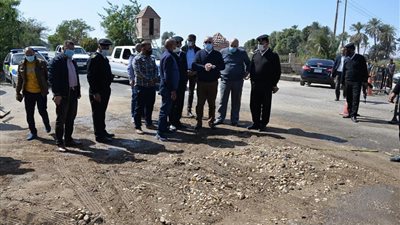 تفقد المستشار مصطفي ألهم محافظ الأقصر، موقع الهبوط الأرضى بأحد جوانب الطريق أمام كمين " يسى " الأمني بطريق الأقصر– قنا الزراعي.