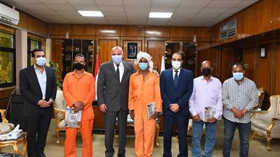 كرم اللواء أشرف الداودى، محافظ قنا، اليوم الإثنين، من عمال النظافة ومشرف منطقة حي المصالح بوسط مدينة قنا