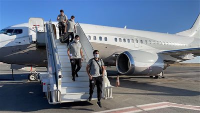 وصلت منذ قليل بعثة فريق نادي بيراميدز إلى مطار محمد الخامس بمدينة كازبلانكا المغربية، استعدادًا لمواجهة الرجاء.