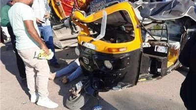 أصيب 4 أشخاص، بإصابات متفرقة في حادث تصادم توك توك مع سيارة ربع نقل، بشارع البحر بعزبة المعمل