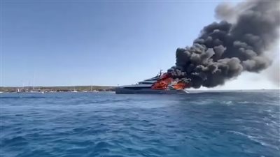 اشتعلت النيران في يخت فاخر بقيمة 20 مليون جنيه إسترلينى، قبالة ساحل جزيرة إسبانية، والذى يمتلكه رئيس شر