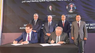 شهد الدكتور أيمن عاشور وزير التعليم العالى والبحث العلمى، توقيع اتفاقية تعاون بين جامعة الإسكندرية الأهلية، وجامعة إيست لندن